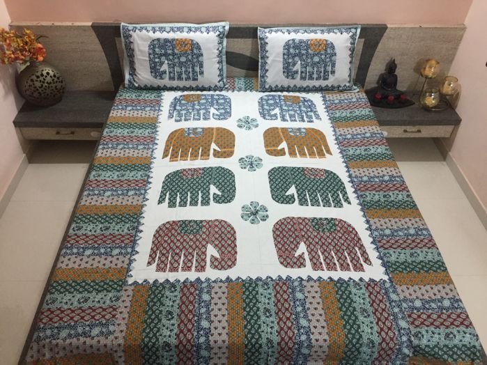 - Post status "Blue Printed bed cover with kantha work (Size 108” X 90” in)" on Twitter
